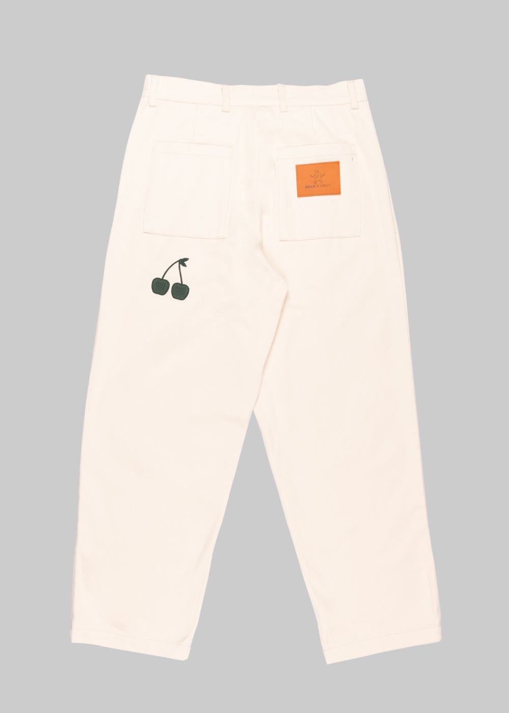 - A leather patch of the Bram's Fruit logo on the back pocket