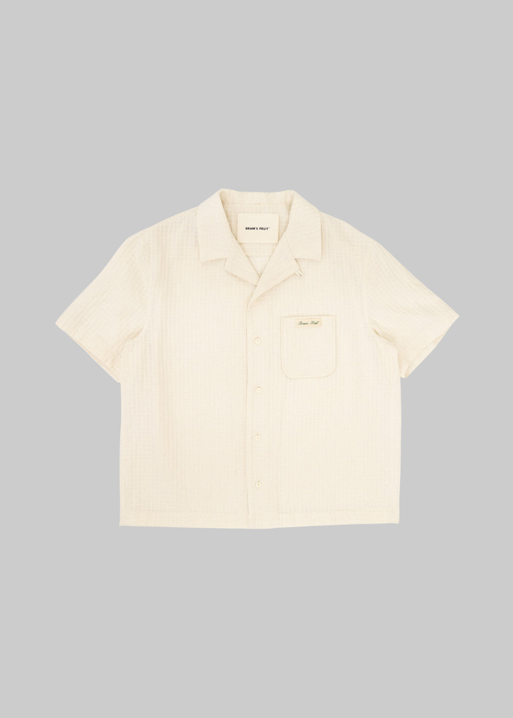 Our Fruit Fabric short sleeve in Off-White features subtle branding