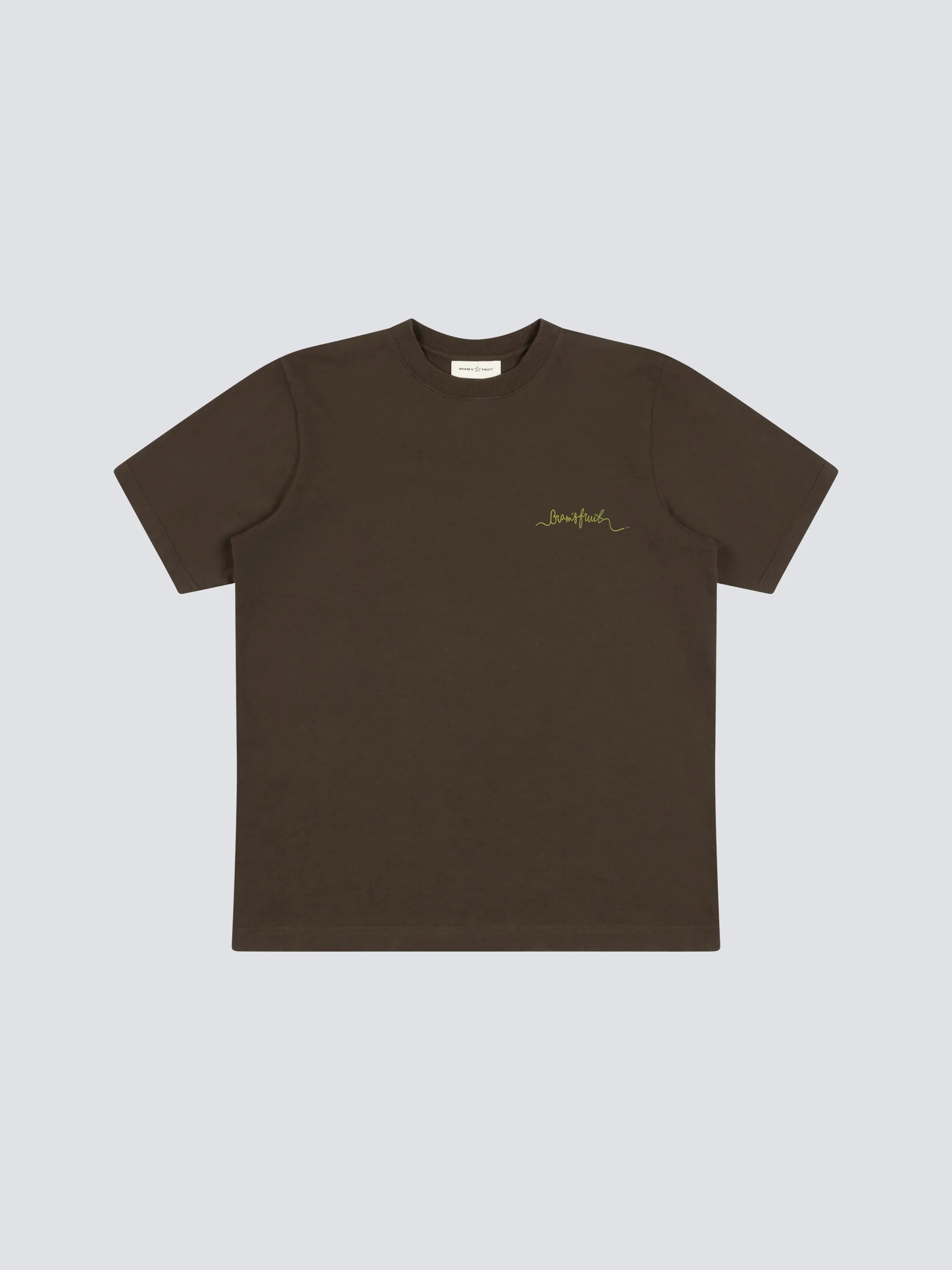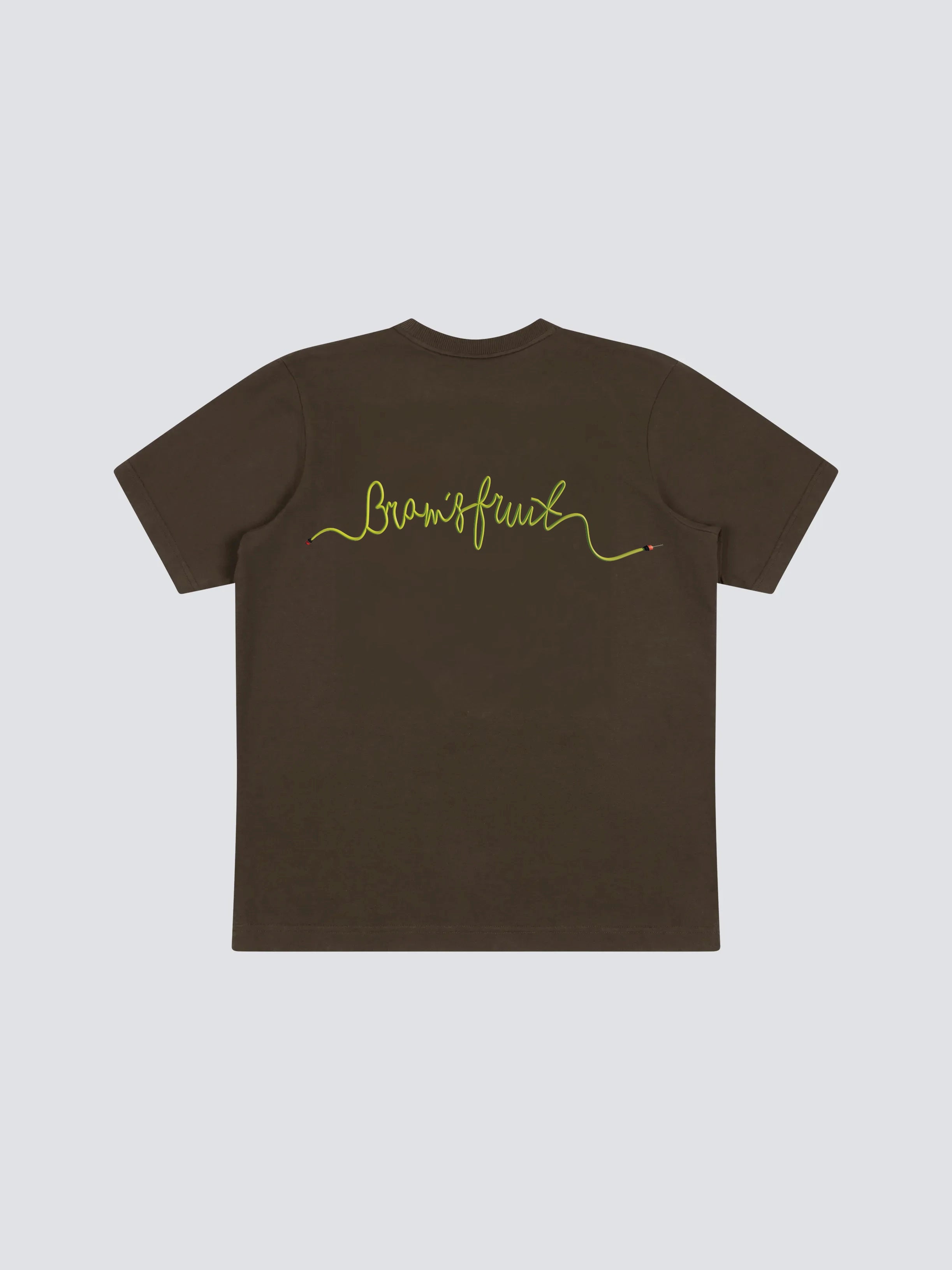 Our Hose T-Shirt in Brown features Bram's Fruit scripted Hose.