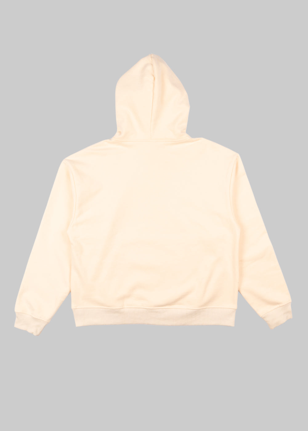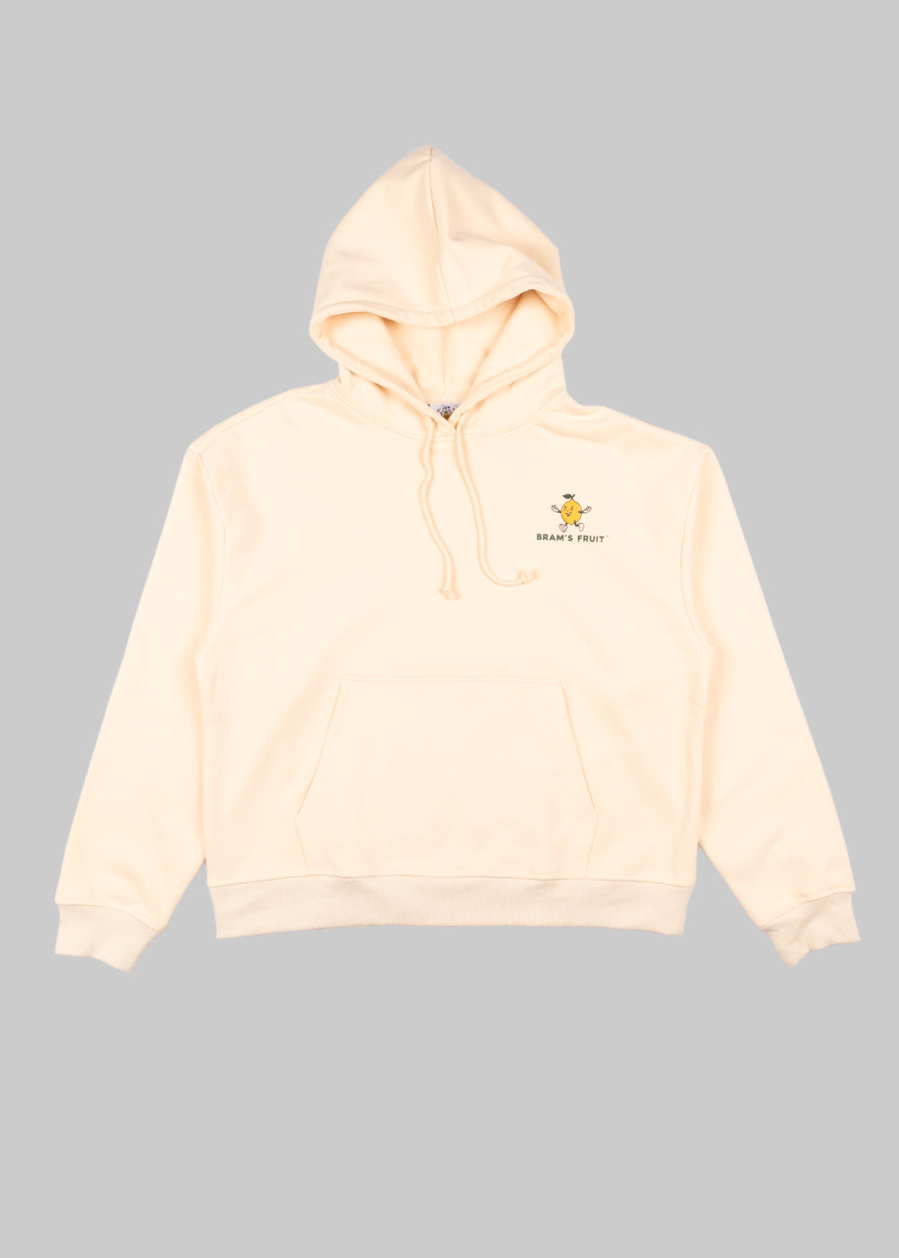 Our Lemon Hoodie in Nude features our lemon logo presented small on the front.